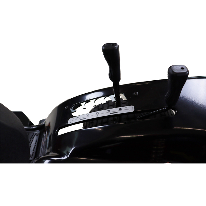 Comfortabel gaspedaal om zonder schokken vooruit en achteruit te rijden, geen hoge slijtage, comfortabel starten en remmen, dankzij de nieuwe traploze hydrostatische aandrijving met gaspedaal. De hydrostatische transmissie maakt indruk met zijn moderne technologie. Dankzij de zelfsmerende hydraulische pomp is hij onderhoudsarm en extreem robuust. Het speciale kenmerk is dat zowel de snelheid als de vooruit- en achteruitloop traploos kunnen worden geregeld. Koppelen of schakelen is niet nodig. Je kunt soepel en tot op de millimeter nauwkeurig rijden.