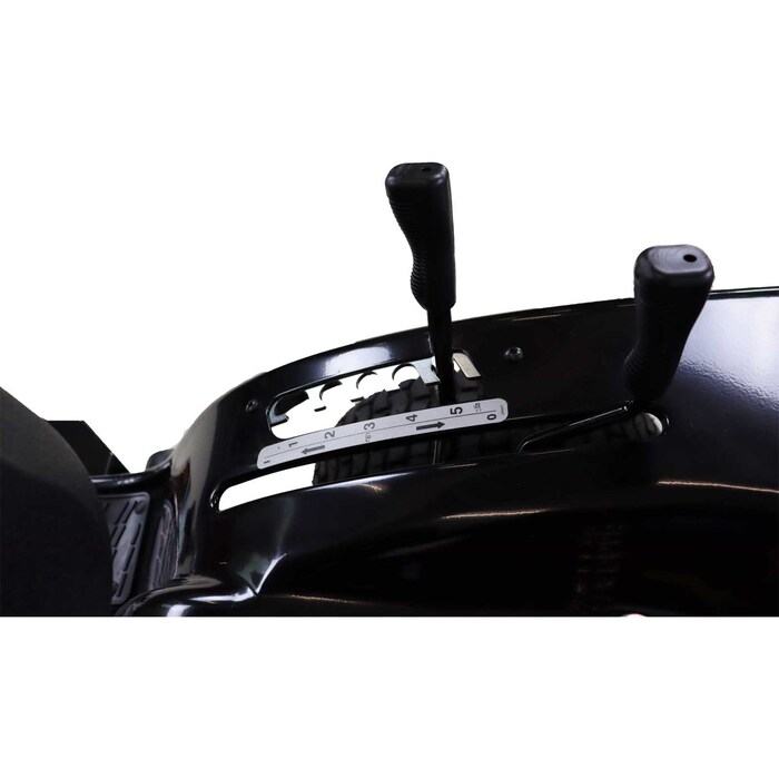 Gebruik je voet om de pedaalwip voor de aandrijving te bedienen, om vooruit of achteruit te rijden. En dankzij de praktische uitschuifbare handgreep kan de grasopvangbak met een inhoud van 260 liter moeiteloos geleegd worden vanaf de bestuurdersstoel.