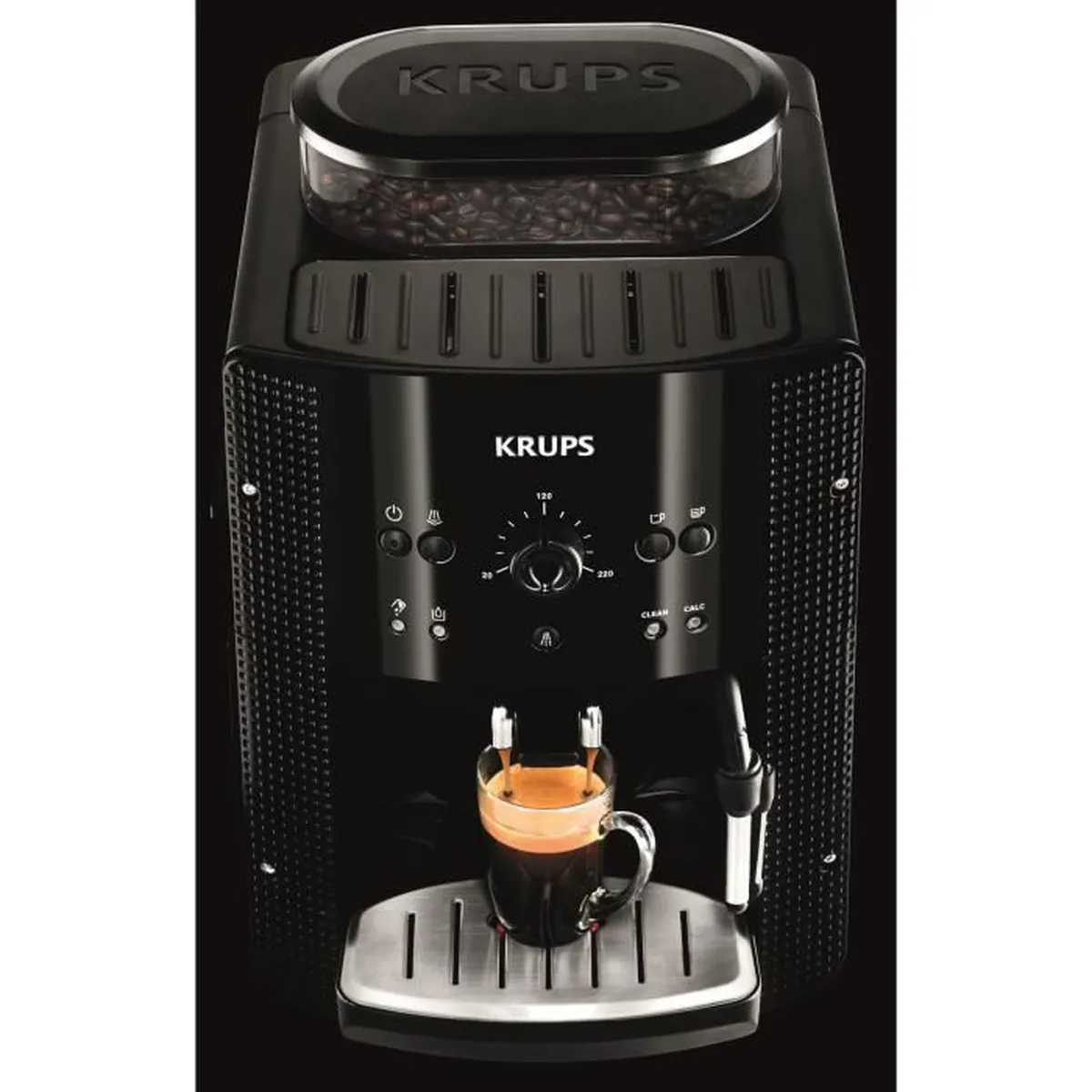 Koffiezetapparaat, koffiebonenmolen, KRUPS Essential YY8125FD espressomachine, stoompijpje, cappuccino, zwart