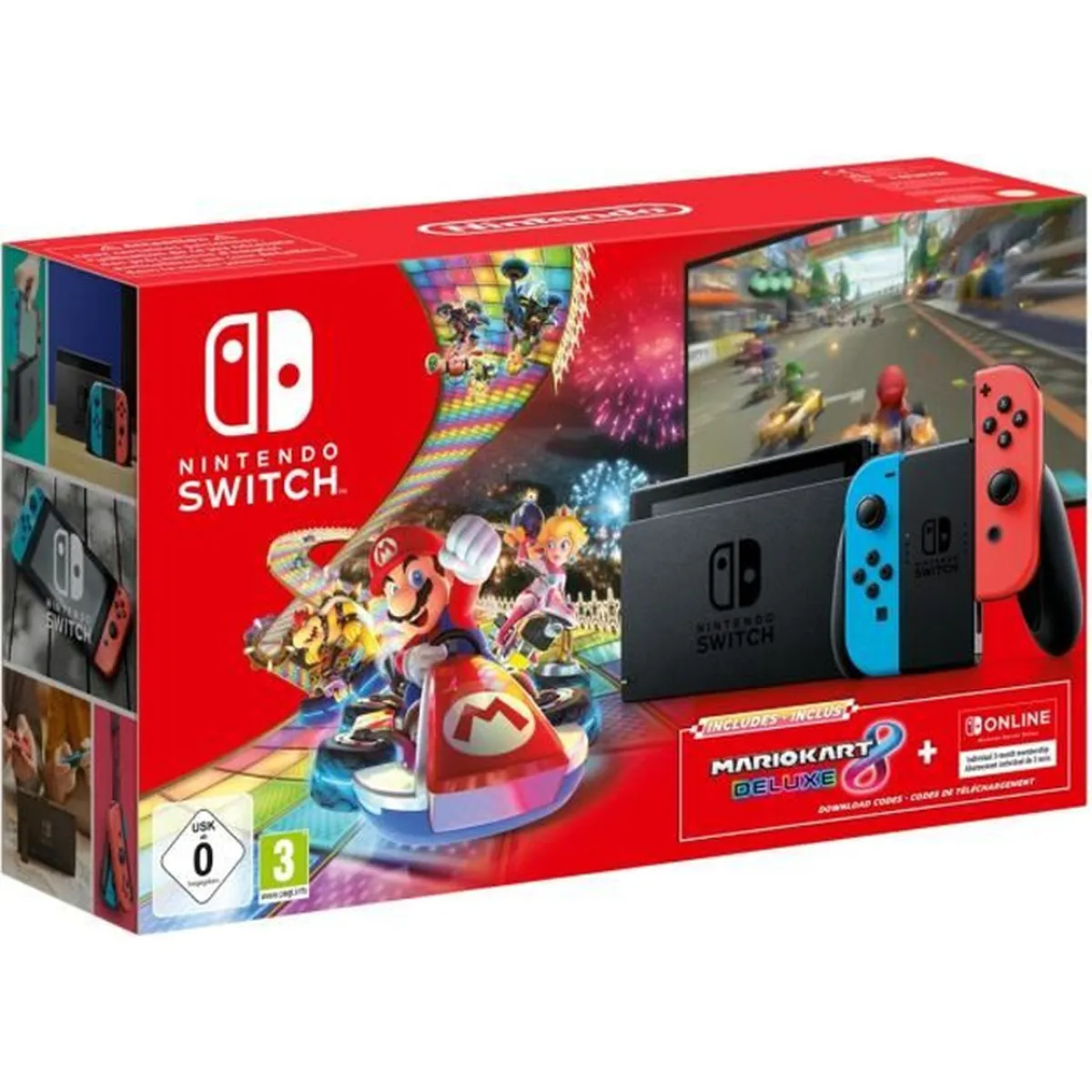 Nintendo Switch V2-consolepakket (met Neon Joy-Con) + Mario Kart 8: Deluxe + 3 maanden Nintendo Switch Online-abonnement